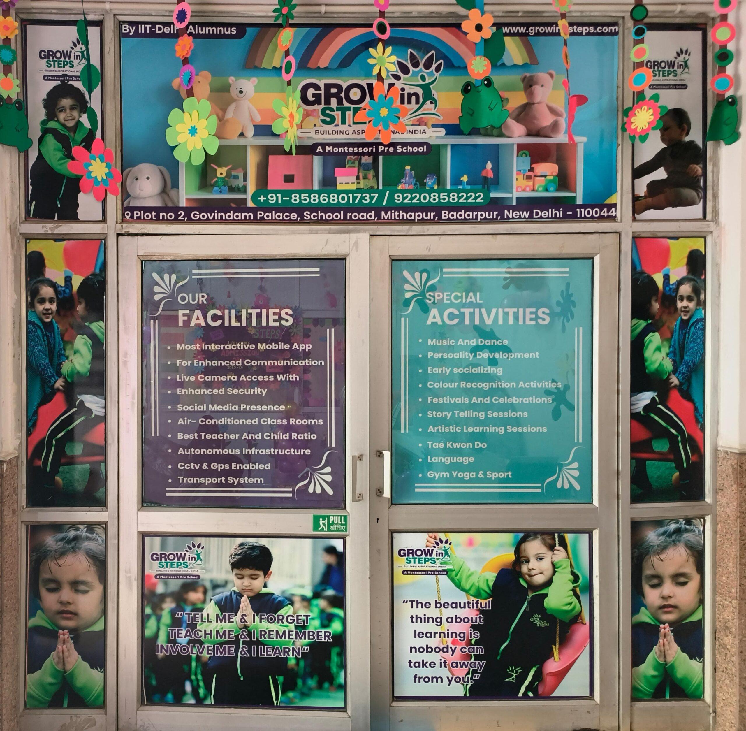As the best preschool & day care in Mithapur, New Delhi, Growinnsteps pays close attention to every detail, from the exceptional care offered to the fundamental learning provided. We thoughtfully plan activities to promote skill acquisition at every developmental stage, enabling children to understand their emotions and develop strong social skills. We ensure that our preschool and daycare in Mithapur, New Delhi goes beyond the traditional definition of daycare. Here, children cultivate a genuine love for learning and are nurtured as they successfully navigate foundational developmental milestones. The engaging rooms and well-equipped toy and learning material centers in Mithapur, New Delhi are comfortable and intentionally designed to encourage exploration, questioning, and the development of their own ideas. Parents looking for the best playschool & day care in Mithapur will deeply appreciate our warm and caring environment, expertly teamed up with a dedicated staff that makes every child feel genuinely valued and safe. To ensure a smooth and successful adjustment for everyone involved, we also foster ample and open communication between our caregivers and parents.